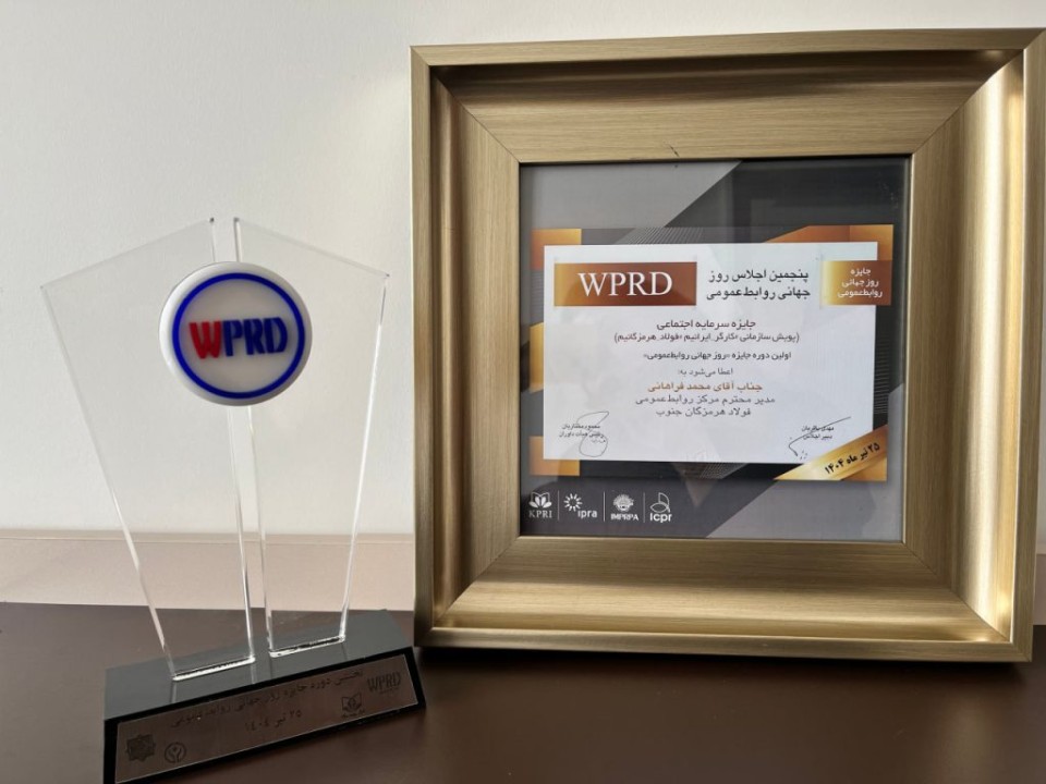 به مناسبت بیست ‌و ششمین سالگرد درگذشت حمید نطقی، بنیان‌گذار روابط‌عمومی در ایران، پنجمین اجلاس «روز جهانی روابط ‌عمومی» با موضوع «ساخت پل‌ها و عبور از قطبی‌شدن» و نخستین دوره جایزه روز جهانی روابط عمومی برگزار شد و فولاد هرمزگان در بخش جایزه سرمایه اجتماعی (پویش سازمانی #کارگر_ایرانیم #فولاد_هرمزگانیم) تندیس و تقدیرنامه دریافت کرد.